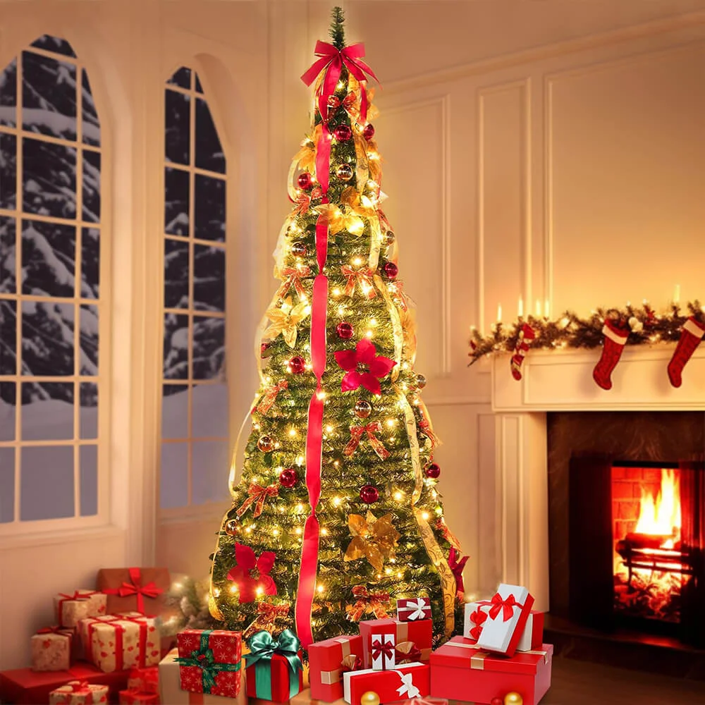 Transformeer uw huis moeiteloos in een winterwonderland met de Pop-Up Red Christmas Tree. Deze 6 voet hoge boom heeft een pop-up design en is voorverlicht met 200 warmwitte ledlampjes en versierd met 64 prachtige ornamenten, waardoor het opzetten een fluitje van een cent is. Binnen enkele seconden kunt u een verbluffende kerstdisplay creëren die uw ruimte vult met de vrolijke geest van Kerstmis.