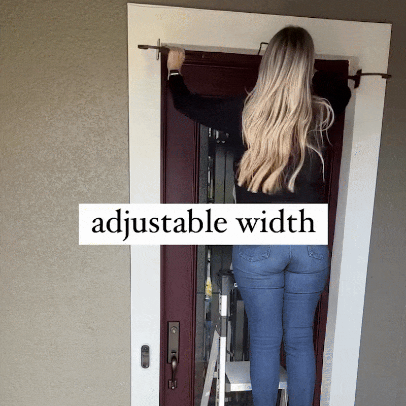 Expandable width suits most standard front doors. The adjustable range from 35" to 52" makes decorating easy. End pads require a minimally exposed jamb for setup. Perfect fit offers a customized appearance every time.