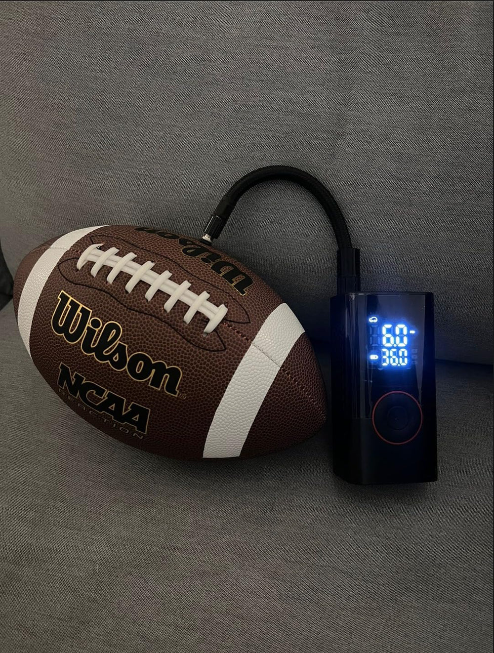 Wow, this portable pump is amazing! It filled my tires quickly and comes with extra attachments—I’m sure it’ll work great for sports balls too. Highly recommend! 10/10!
